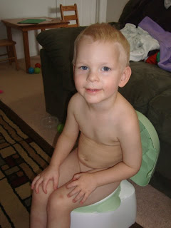 Well now we are about a week into this and he seems to be doing well. He holds most of his pee in and doesn't seem to get everything out when he is on the potty but he is getting it! Go, Christian, Go!!!